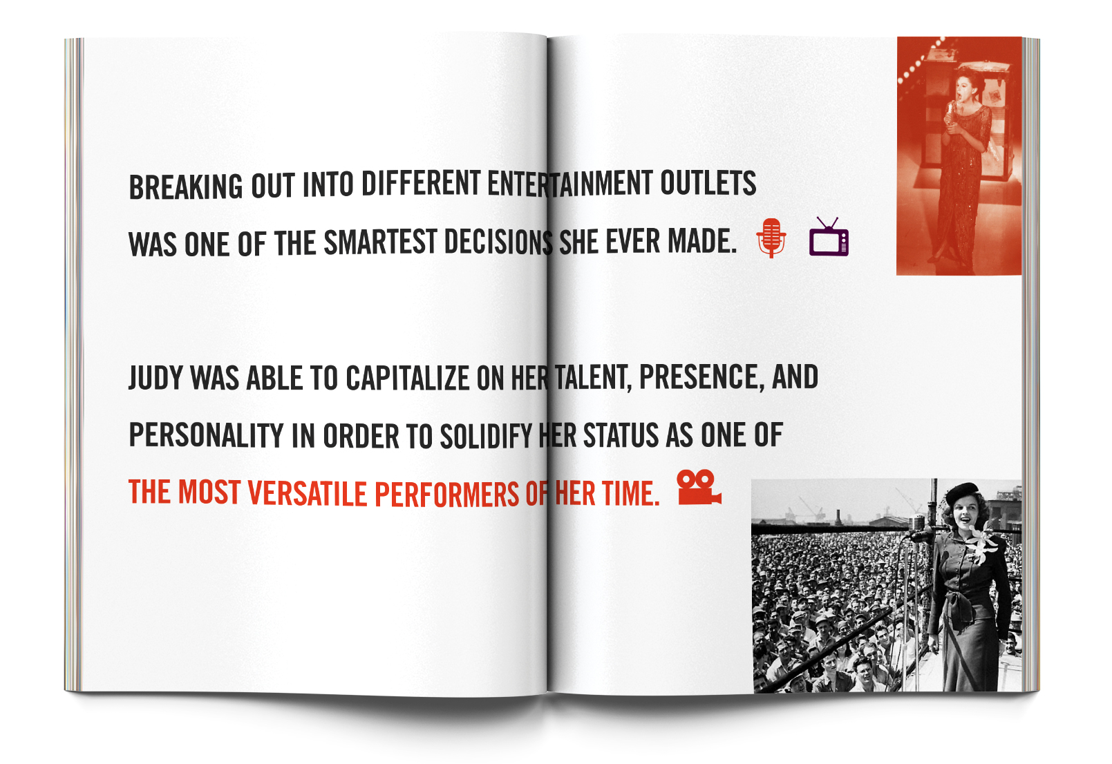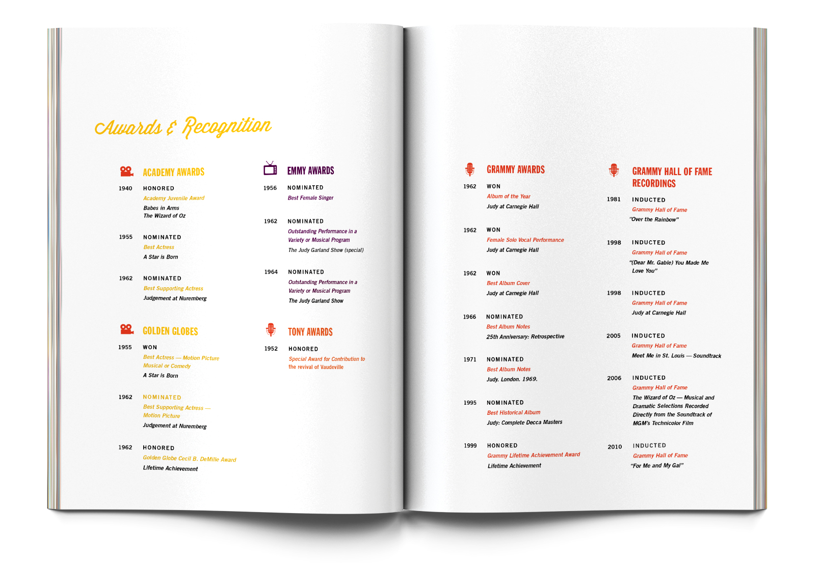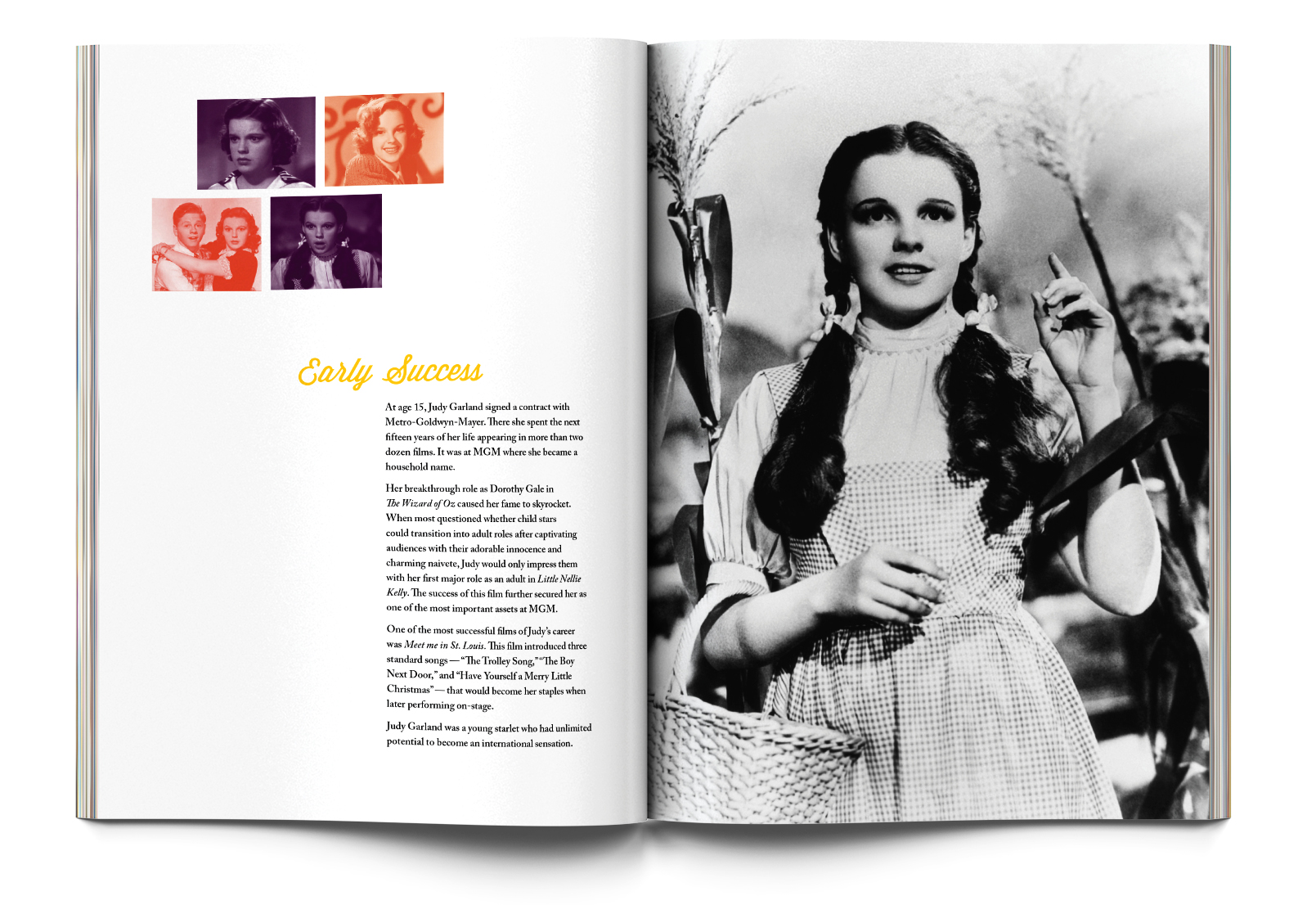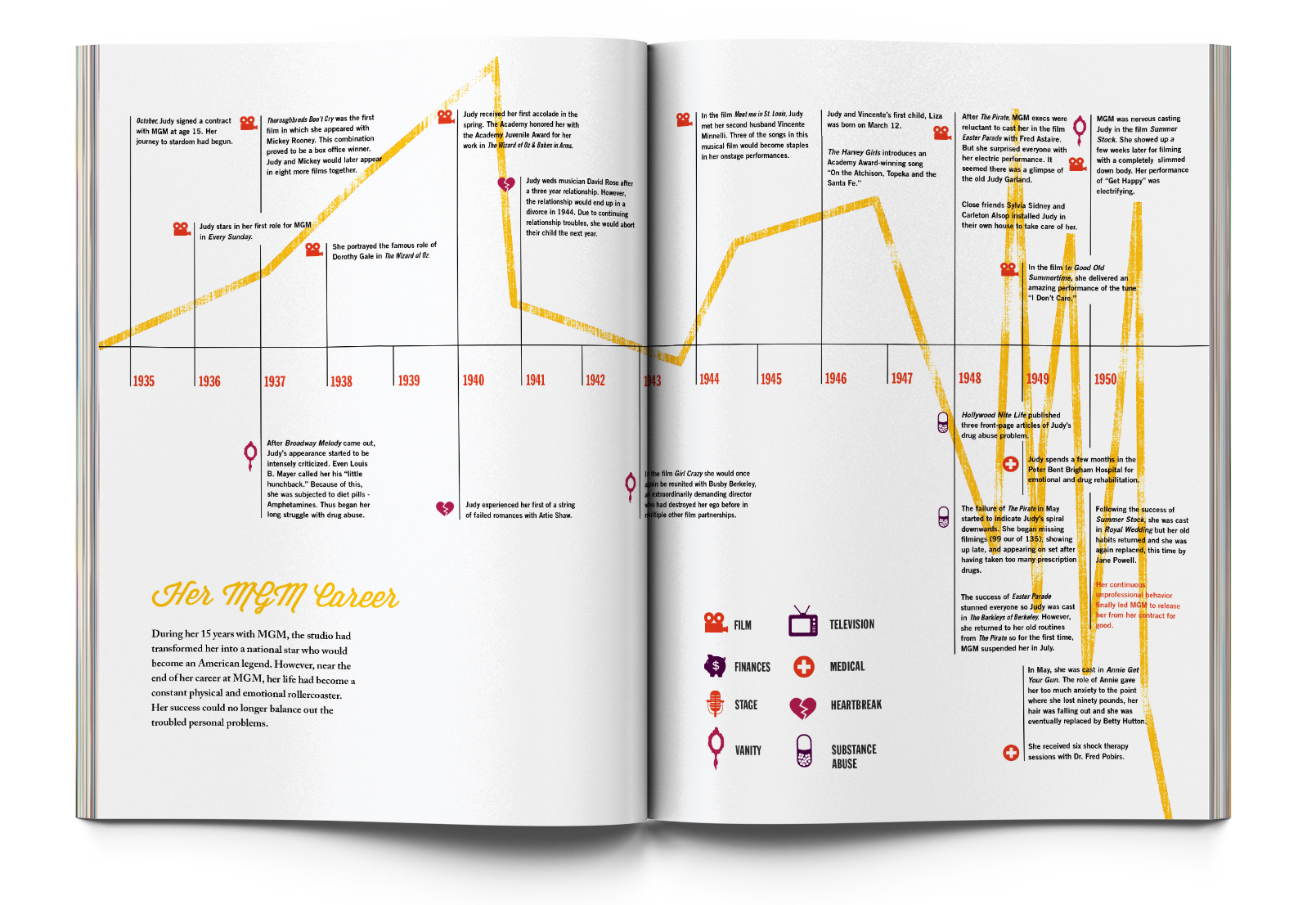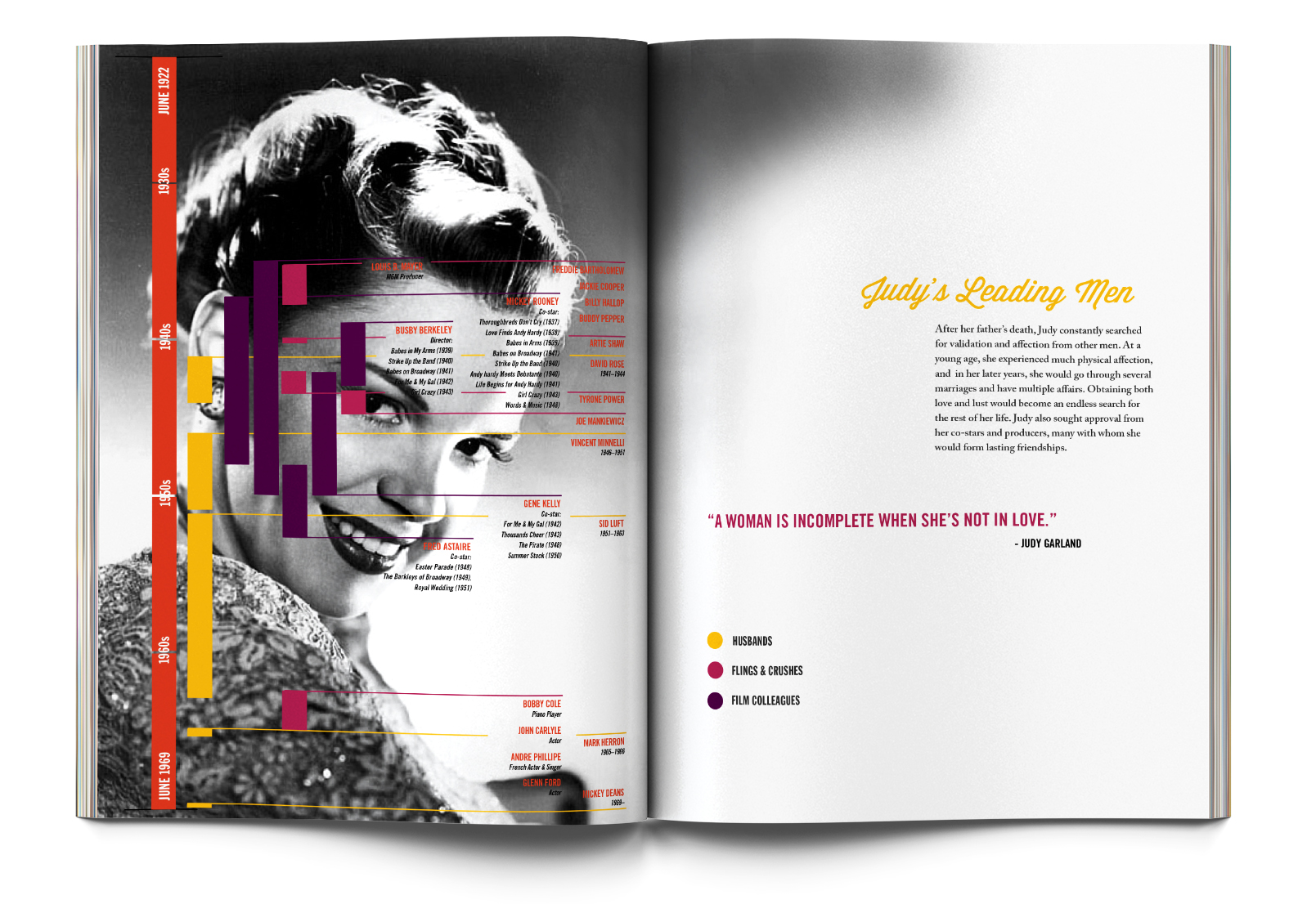 Book design about Judy Garland's turbulent life. Selected for the AIGA St. Louis Design Show, Spring 2012.
